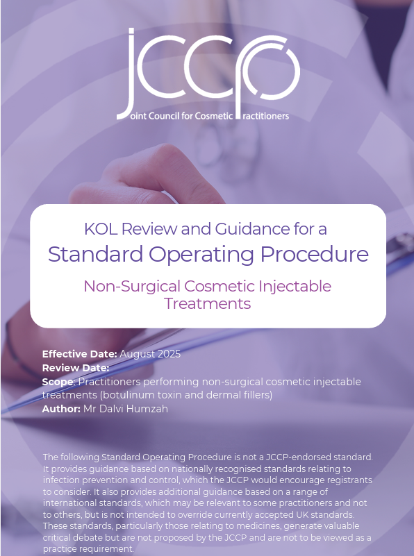 Important information concerning the Standard Operating Procedure for Non-Surgical Cosmetic Injectable Treatments published on the JCCP website.